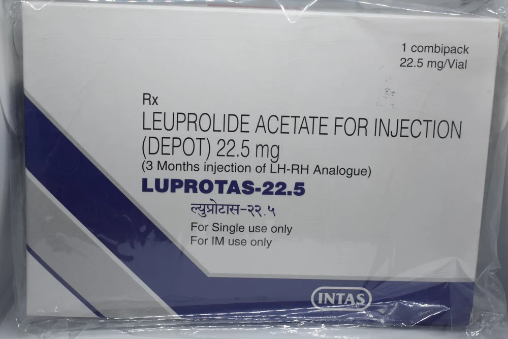 Leuprolide Acetate 22.5 mg is a synthetic analogue of gonadotropin-releasing hormone (GnRH). This specific formulation is a very long-acting depot injection, typically administered once every 6 months (semi-annually). It comes as a sterile powder that must be reconstituted with a specific diluent just before intramuscular (IM) or subcutaneous (SC) injection by a healthcare professional. Its high dose and slow-release nature provide sustained suppression of sex hormones.